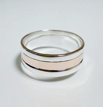 Обручальное кольцо из серебра с золотыми пластинами