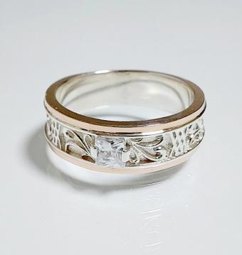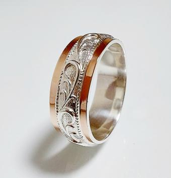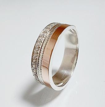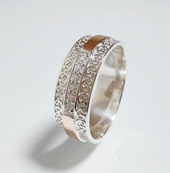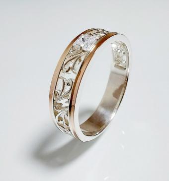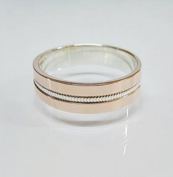 Обручальное кольцо из серебра с золотом