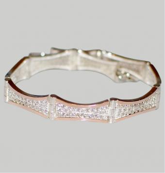 Мужчины в основном выбирают массивные украшения из белого серебра, такой браслет добавляет мужественности его обладателю и подчеркивает мощность мужского запястья. Для изготовления мужских браслетов используется особо прочное серебро - стерлинговое, отличающееся холодным бело-серебристым цветом.