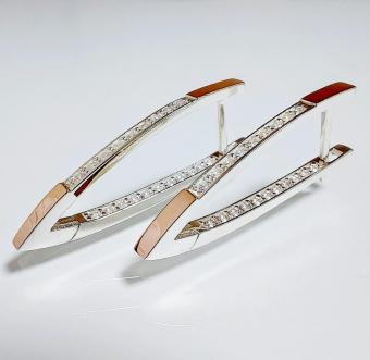 В коллекции есть серебряные серьги с золотыми пластинами, которые для непосвященных в эту тайну создадут настоящую иллюзию. Со стороны украшения будут казаться полностью золотыми. Пластины из драгоценного металла покрывают значительную часть изделия и смотрятся великолепно. Совсем другой эффект производят серьги серебряные с золотыми накладками, позволяя сочетать два металла и создавать очень красивые по рисунку, а также фактуре украшения. В сочетании с качественными цирконами, эти серьги будут смотреться очень эффектно. Решая купить такие изделия, вы получаете недорогое, но очень красивое украшение.
