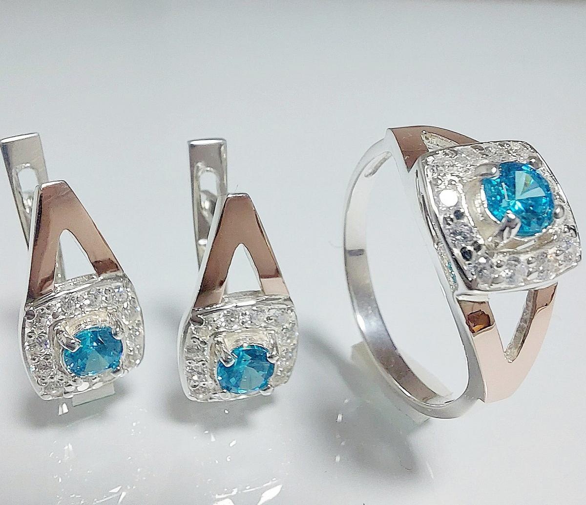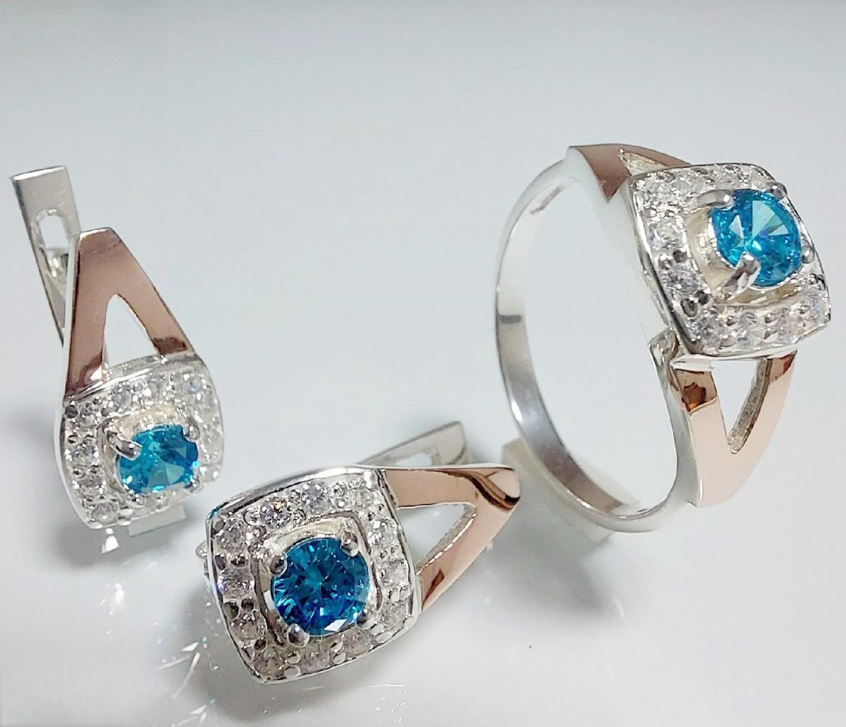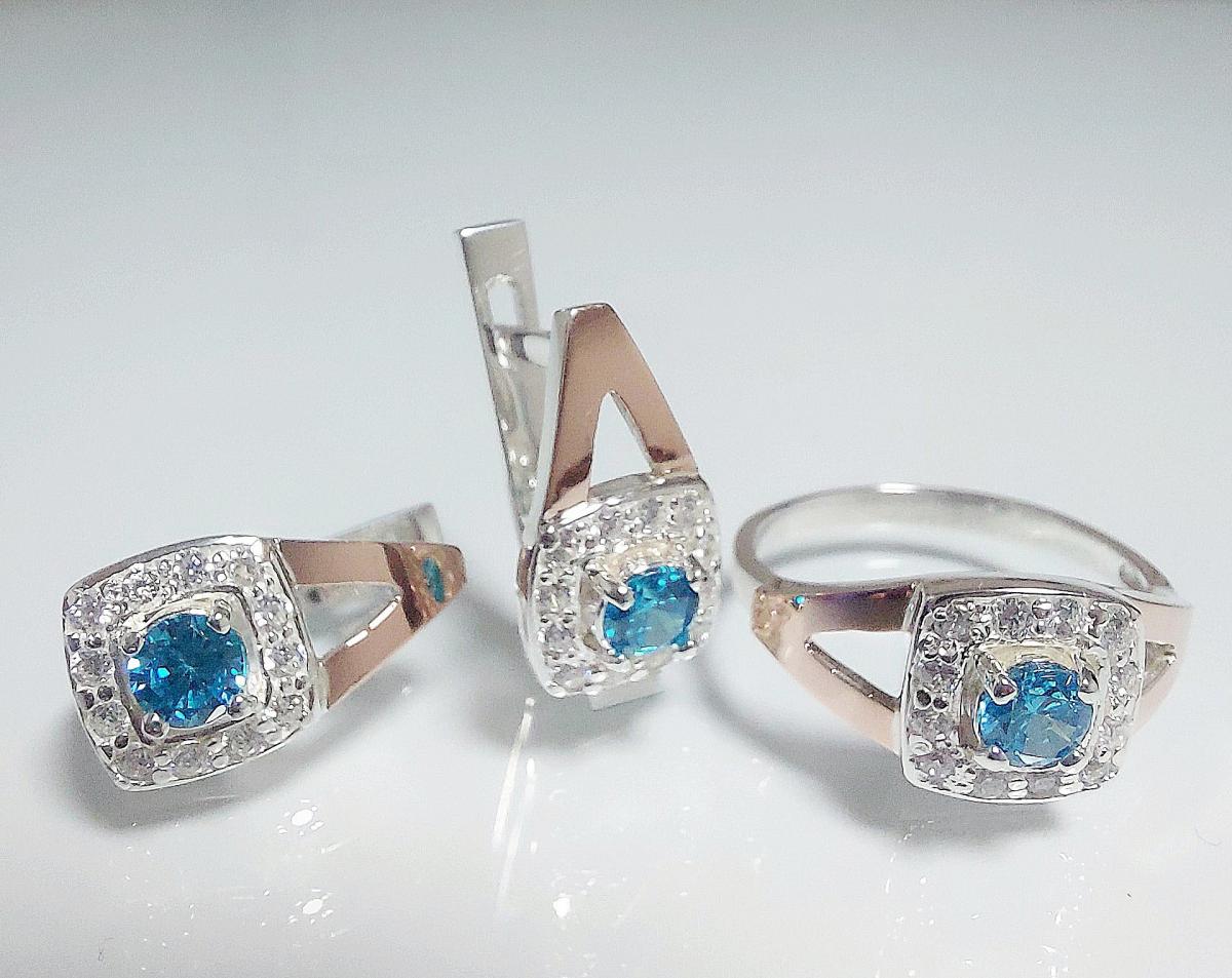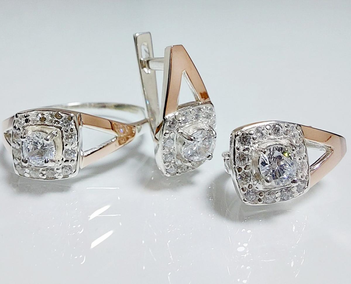 Серебряный набор с золотыми накладками.