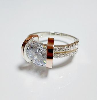 Кольцо из серебра 925 пробы с золотыми накладками 375 пробы