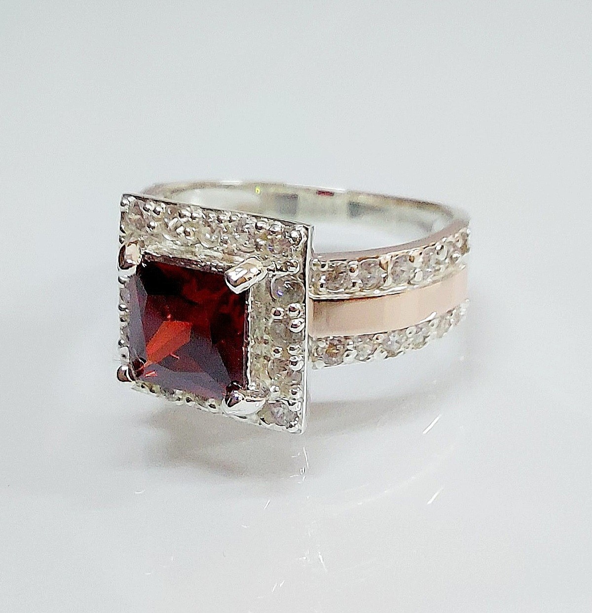 Кольцо из серебра 925 пробы с золотыми вставками 375 пробы