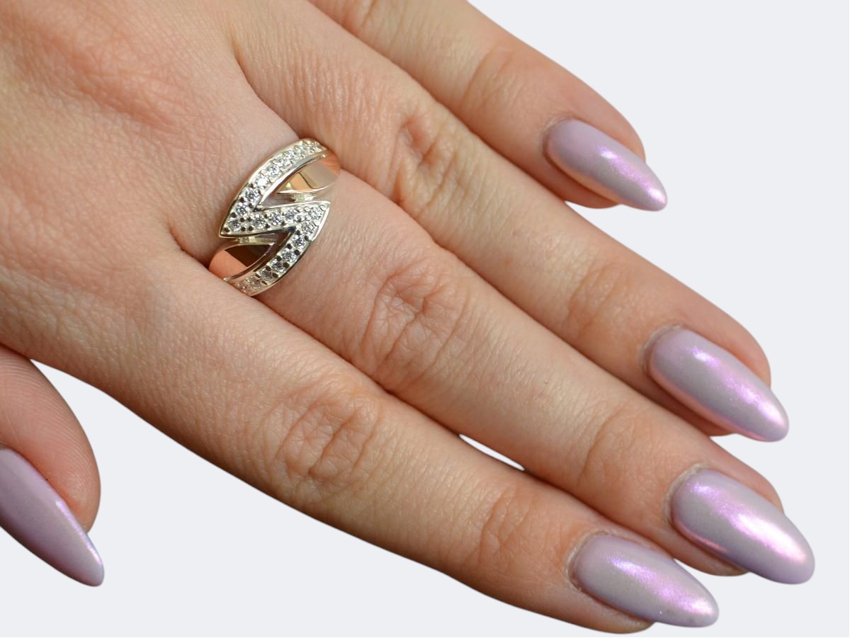 Серебряное кольцо с золотыми накладками
