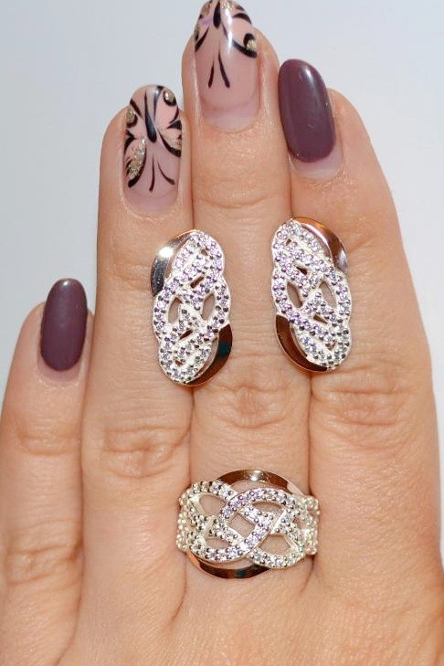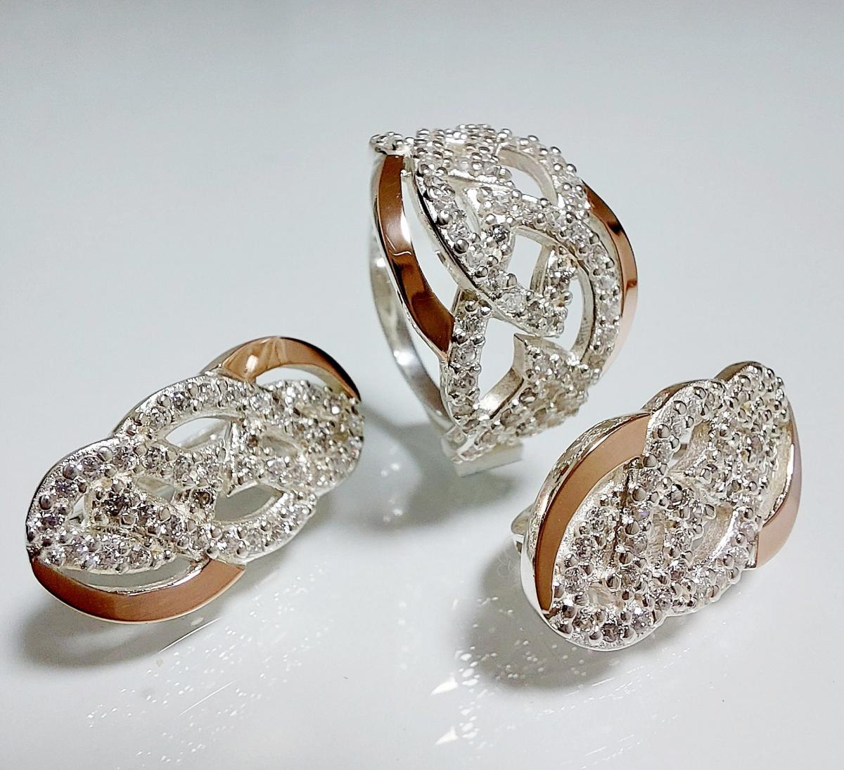 Состав набора: серьги, кольцо