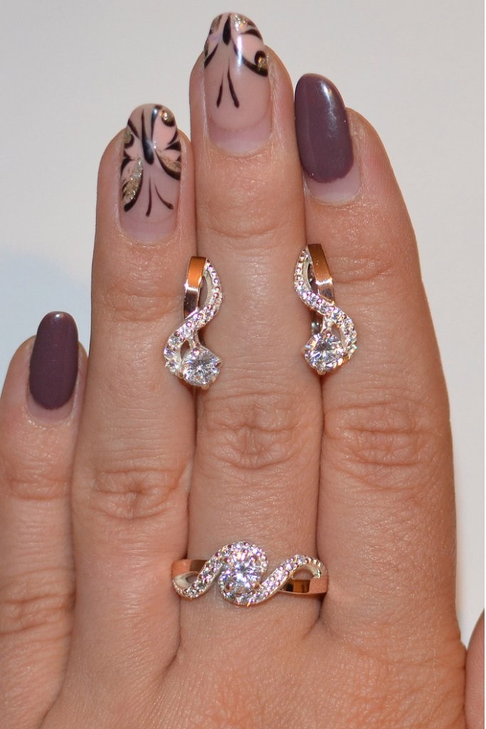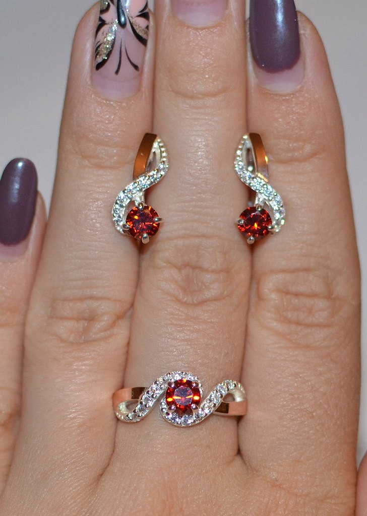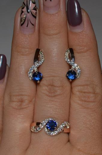 Состав набора: серьги, кольцо