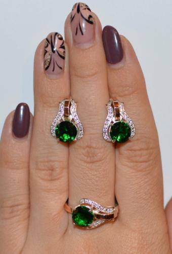 Состав набора: серьги, кольцо
