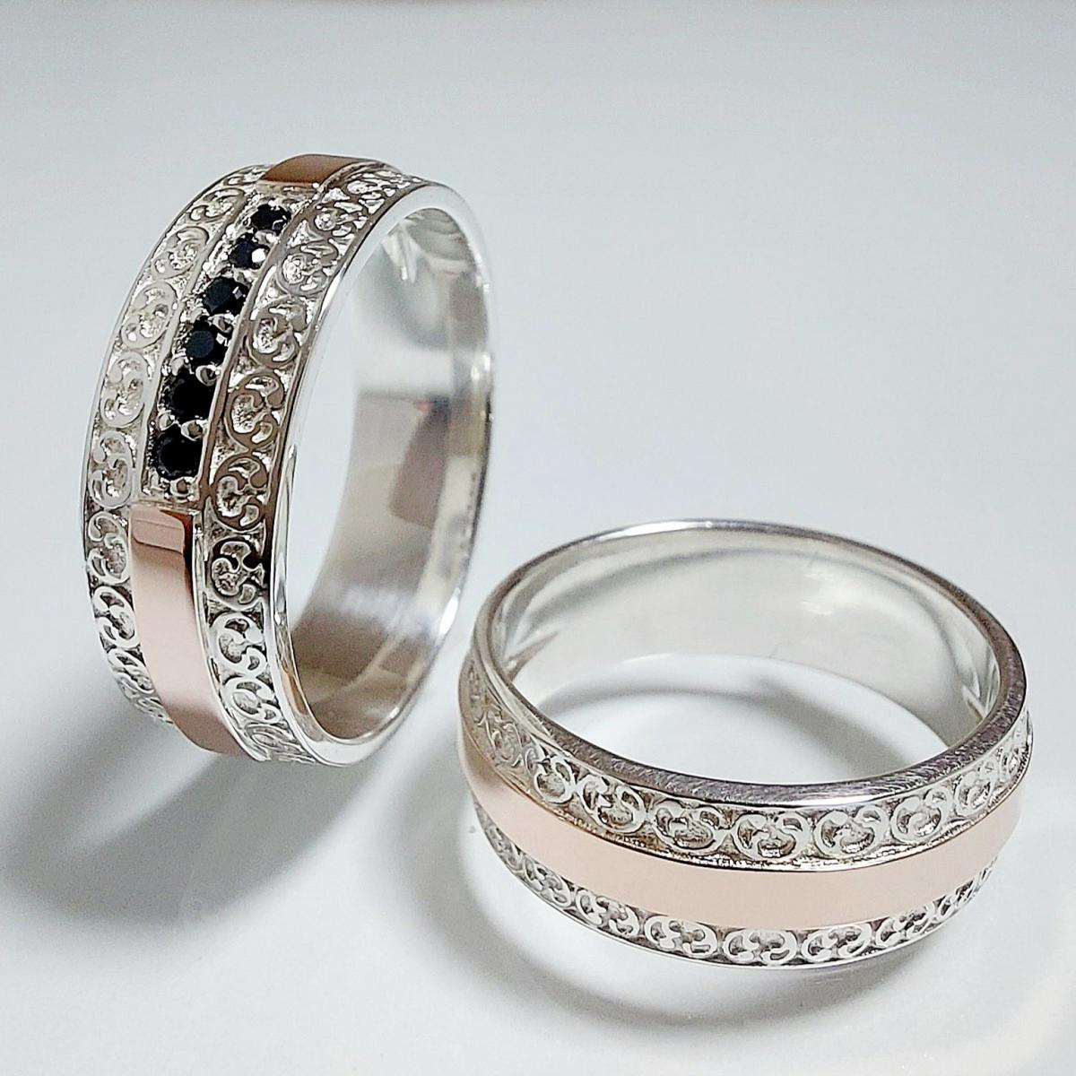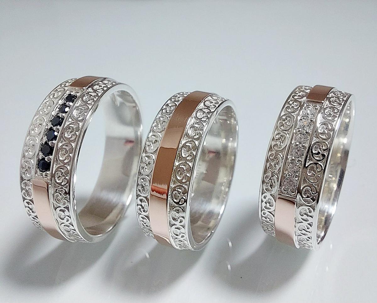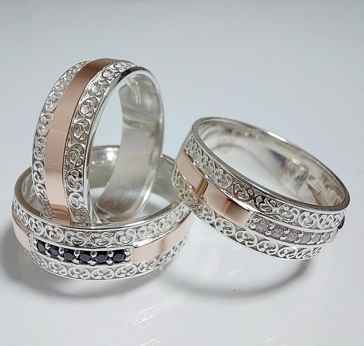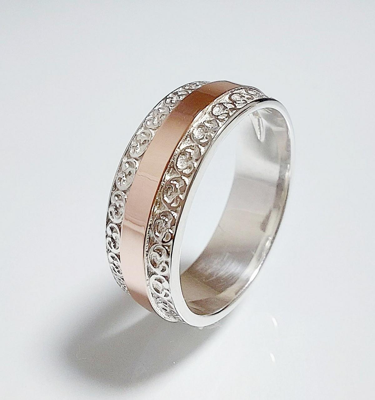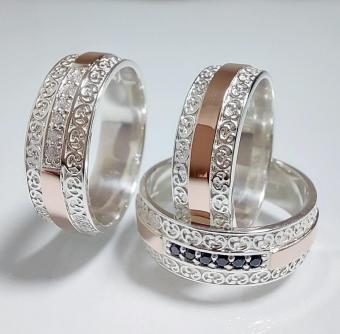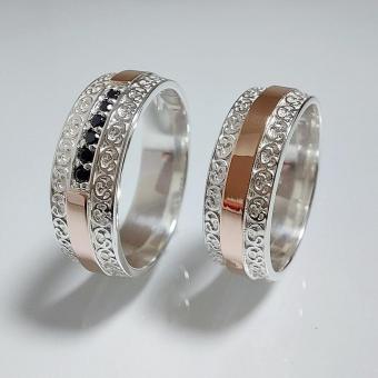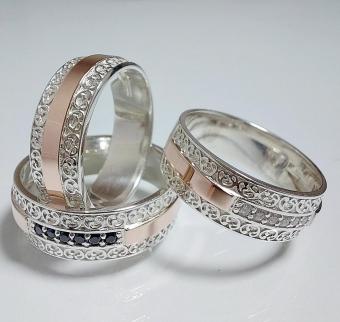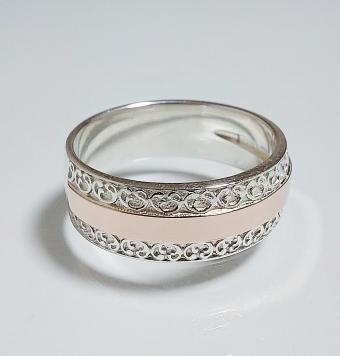 Обручальное кольцо из серебра с золотыми накладками