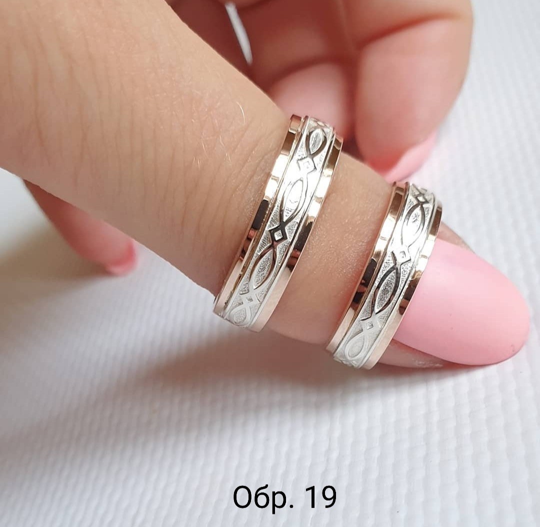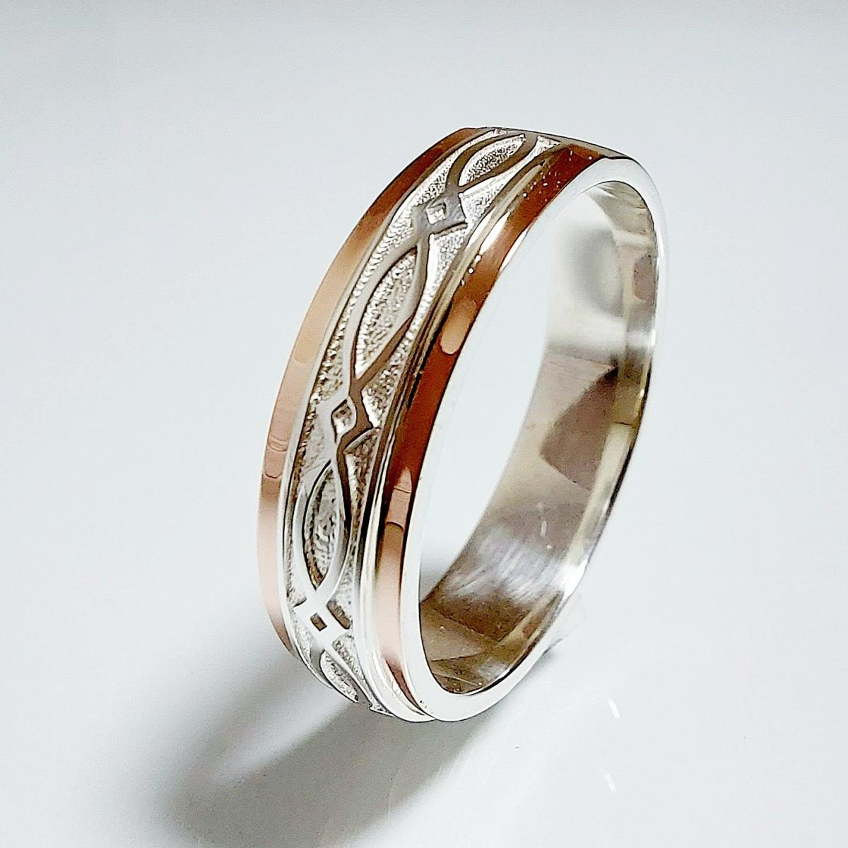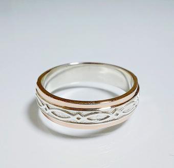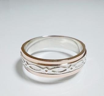 Обручальное кольцо из серебра с золотыми накладками