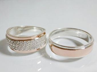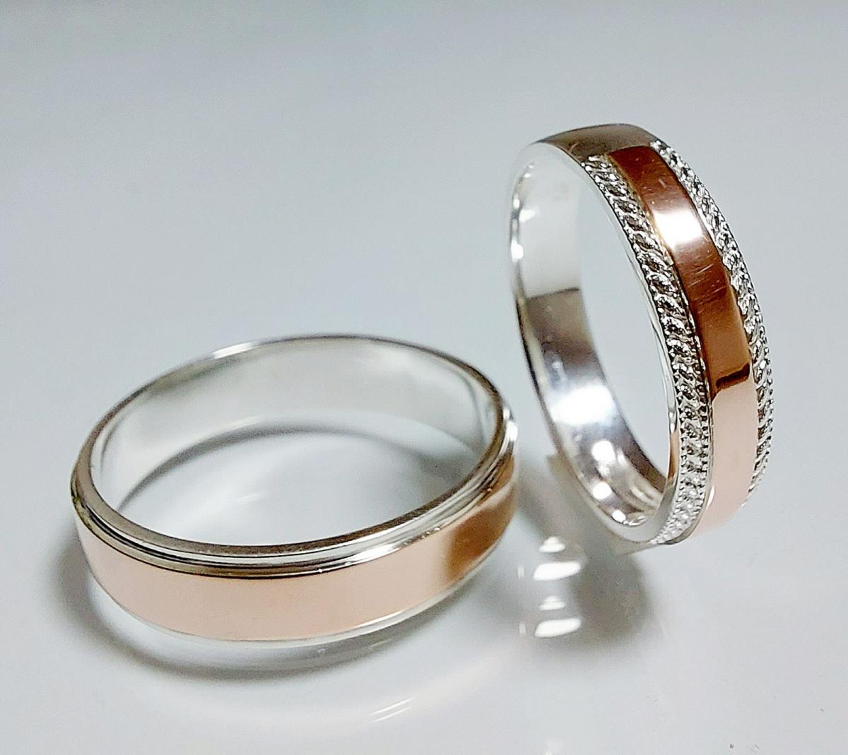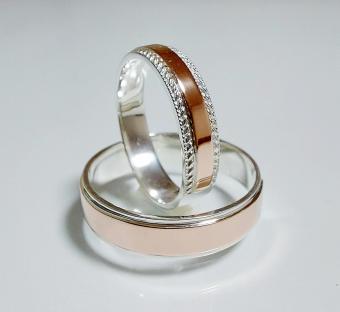 Обручальное кольцо из серебра с золотыми пластинами