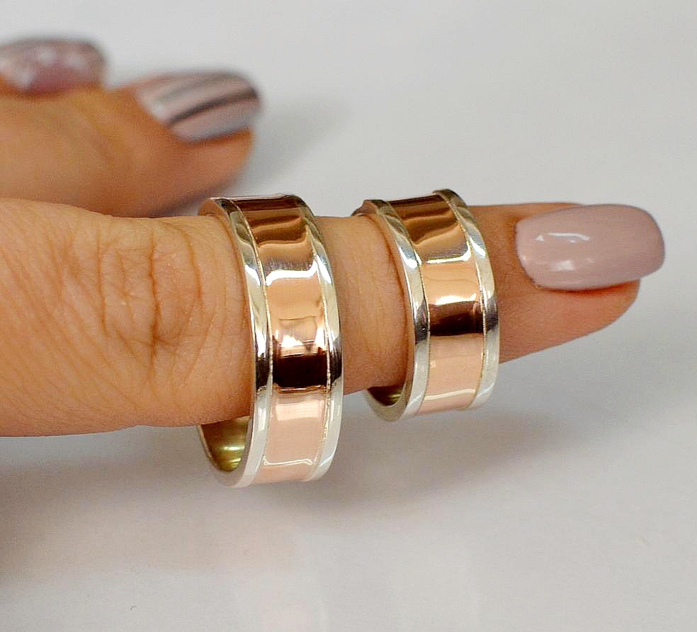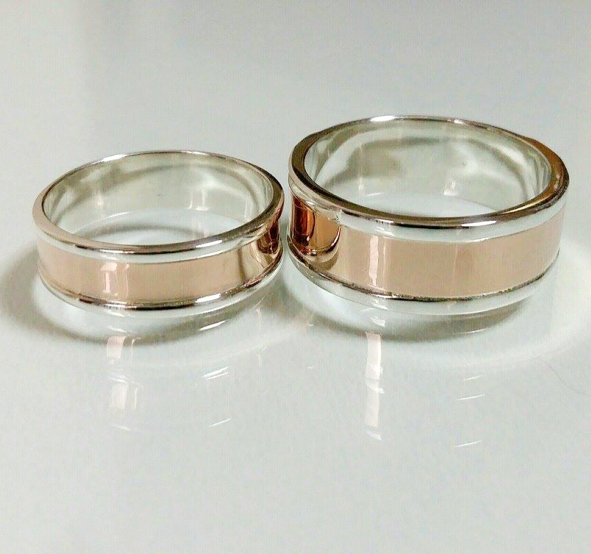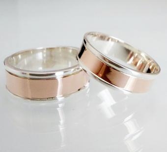 Обручальное кольцо из серебра с золотыми вставками