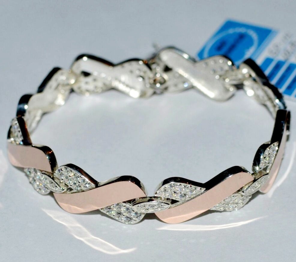 Серебряный браслет с золотыми накладками