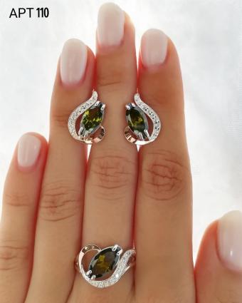 Состав набора: серьги, кольцо