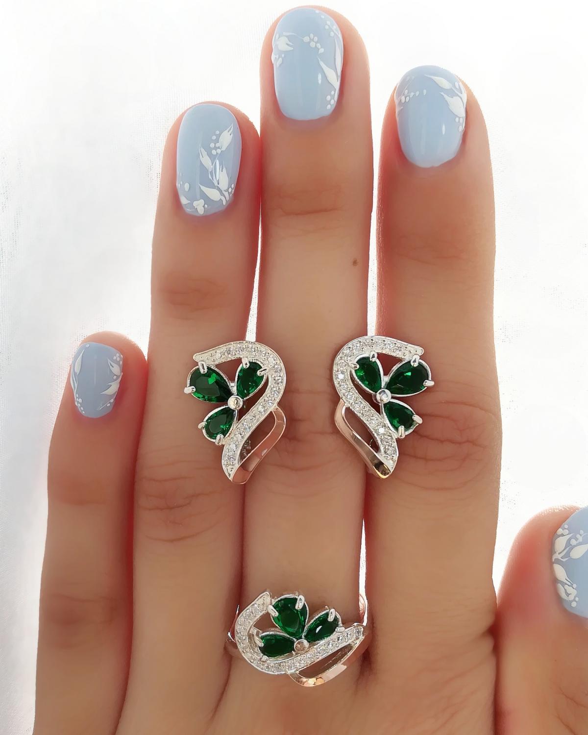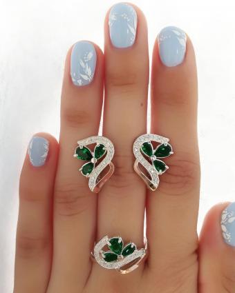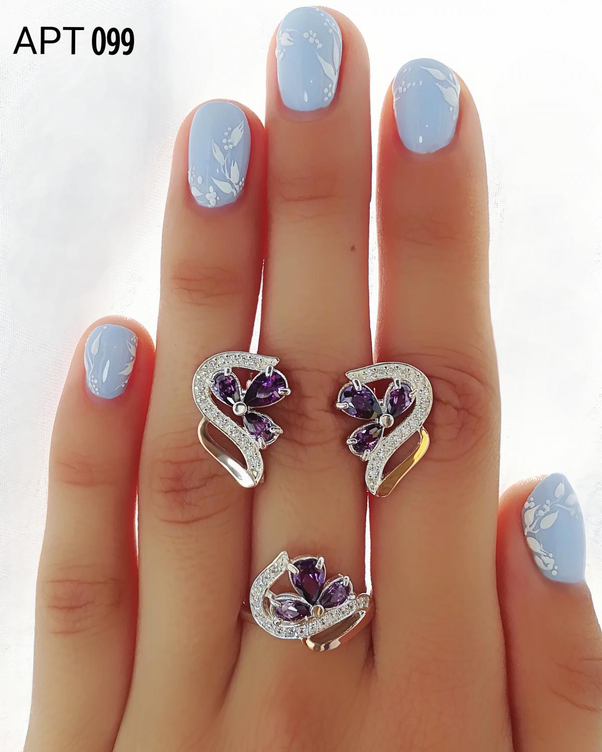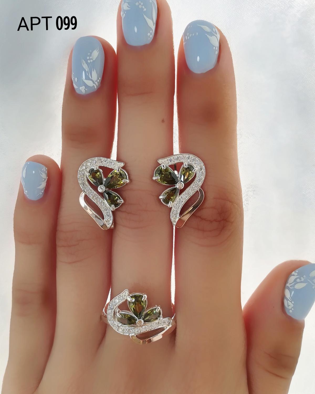 Состав набора: серьги, кольцо