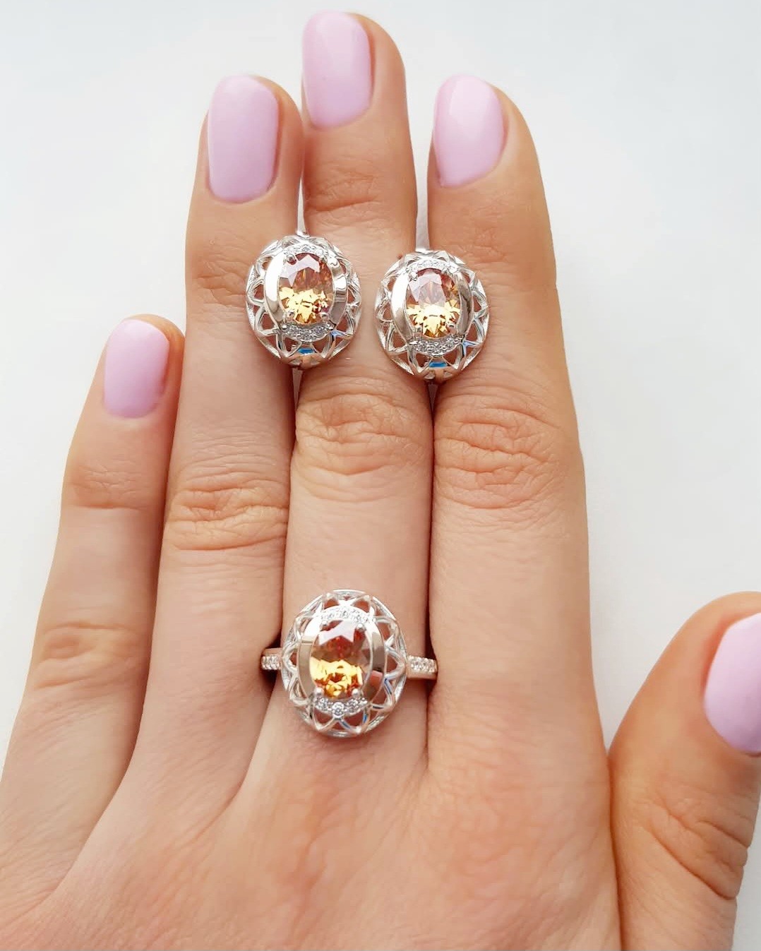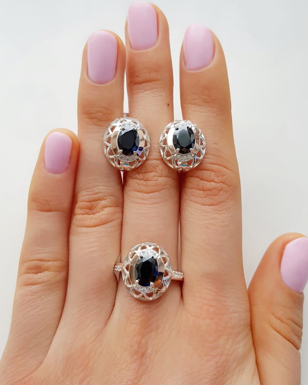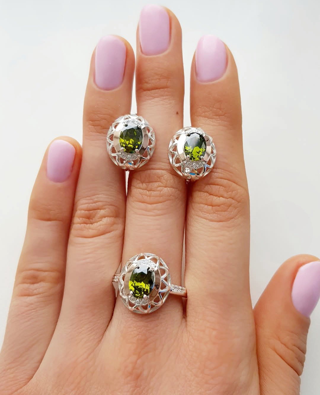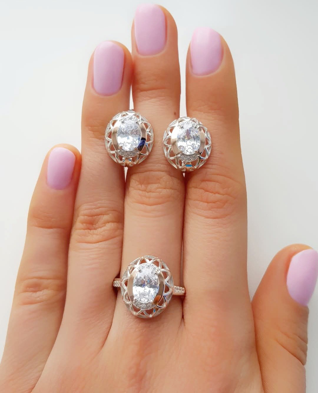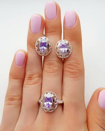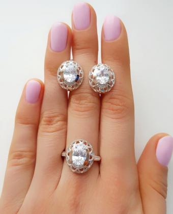 Состав набора: серьги, кольцо