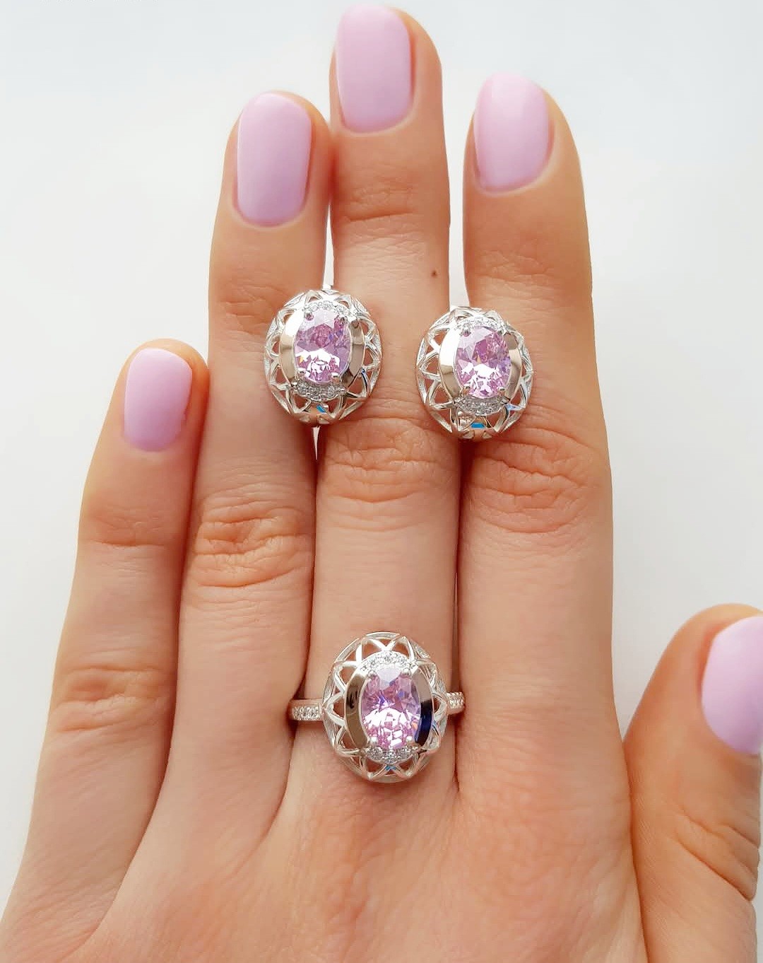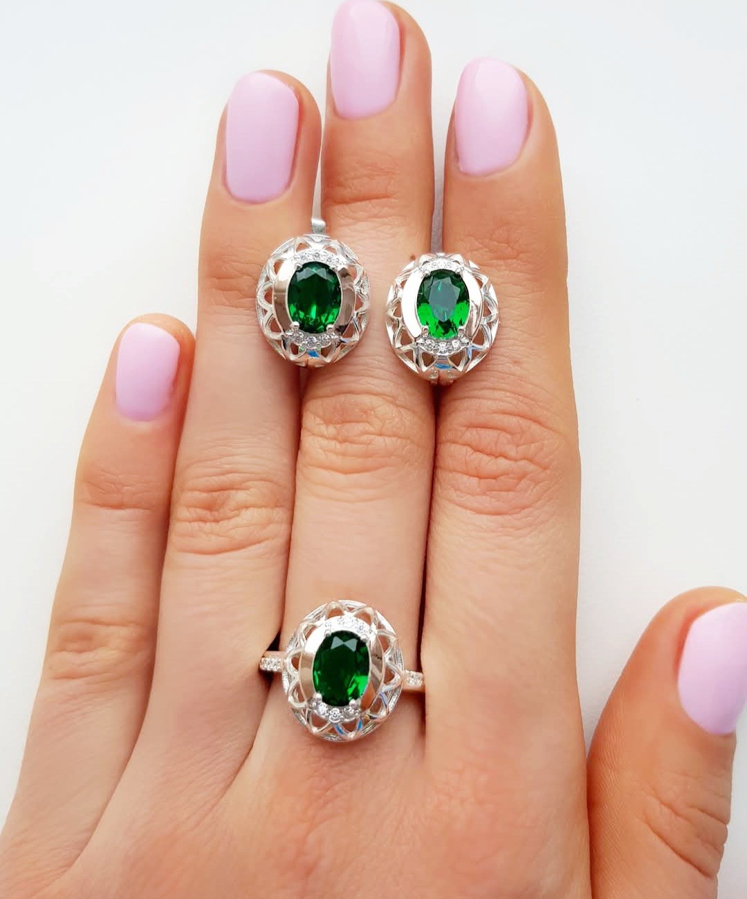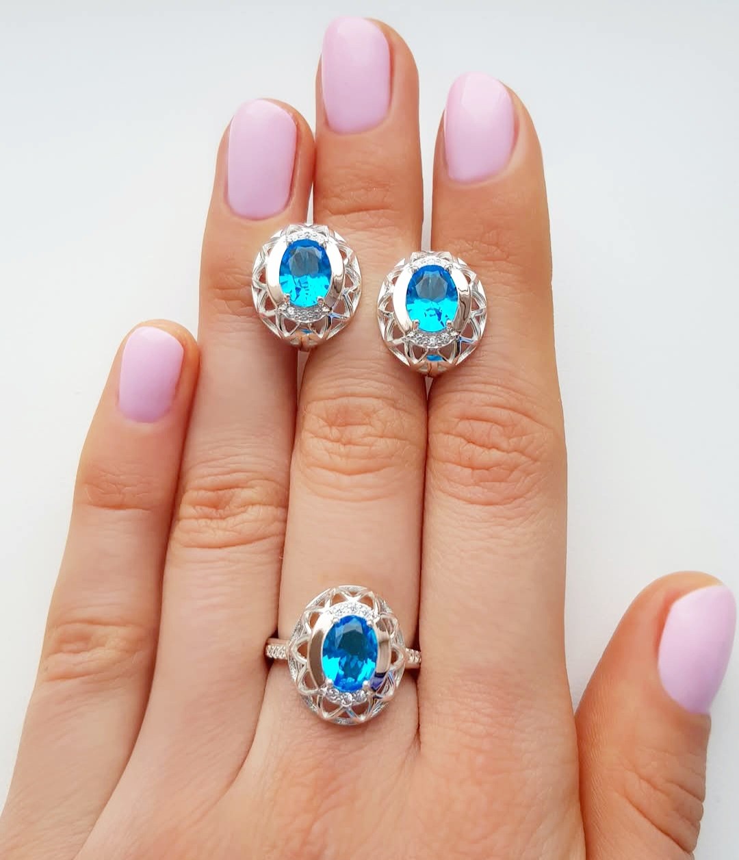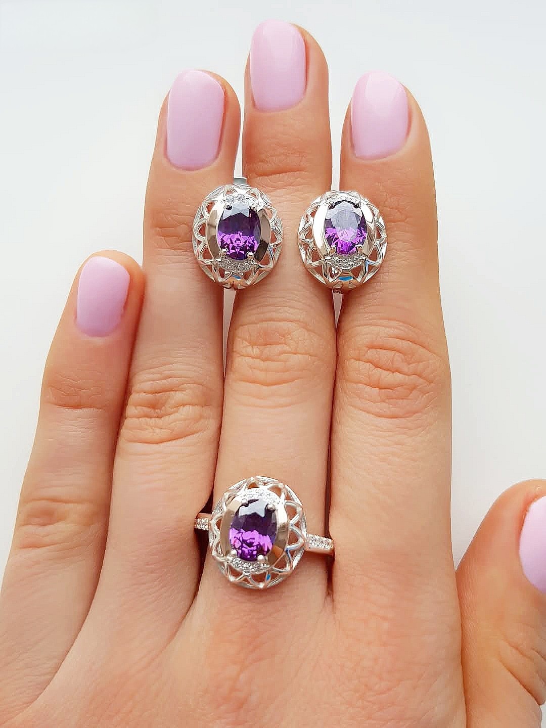 Состав набора: серьги, кольцо