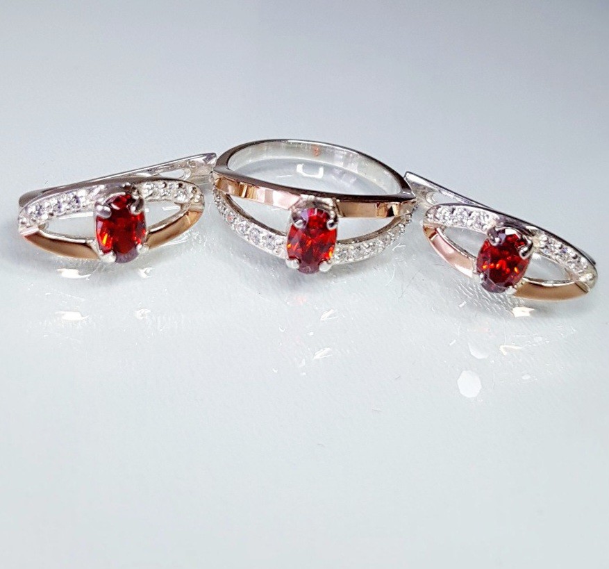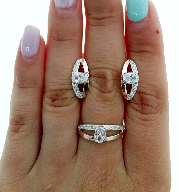Состав набора: серьги, кольцо